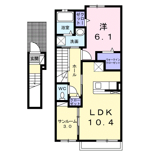 LDK10.4帖・洋室6.1帖・サンルーム3.0帖 |