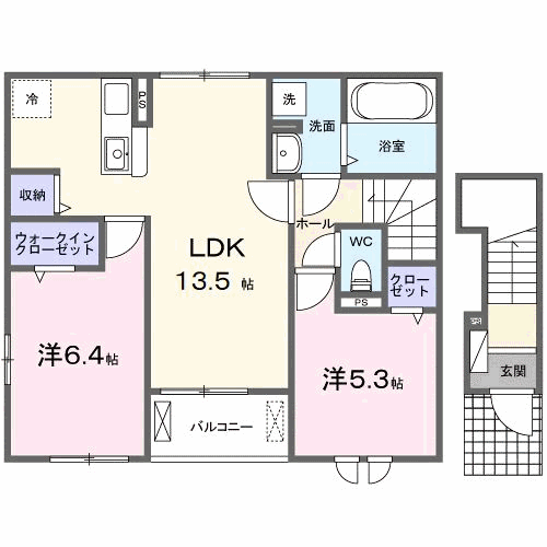 LDK13.5帖・洋室6.4帖・洋室5.3帖 |
